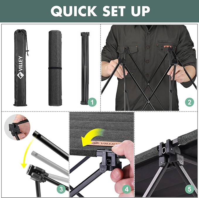 • Strong Yet Lightweight – Premium aluminum alloy frame supports up to 55 lbs while keeping the table ultra-light (2.75 lbs). Easy to carry and ideal for minimalist campers