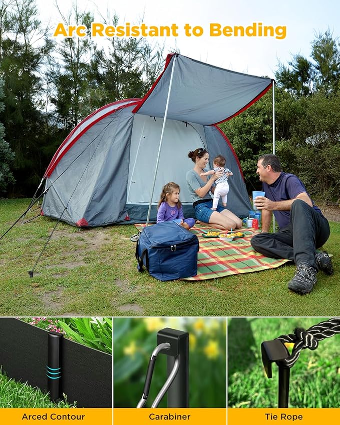 • Effortless Soil Penetration: The micro arc tip of our metal stakes for ground easily penetrates soil and gravel, reducing the risk of bending or hand injuries caused by plastic stakes, ensuring safe and effective use