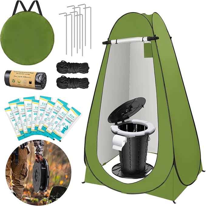 BLIKA Portable Toilet Kit for Camping, Camp Toilet with Pop-Up Privacy Tent, Toilet Bags and Eco Absorbent Gel, Foldable Portable Toilet for Adults, Portable Outdoor Shower Tent Camp Toilet