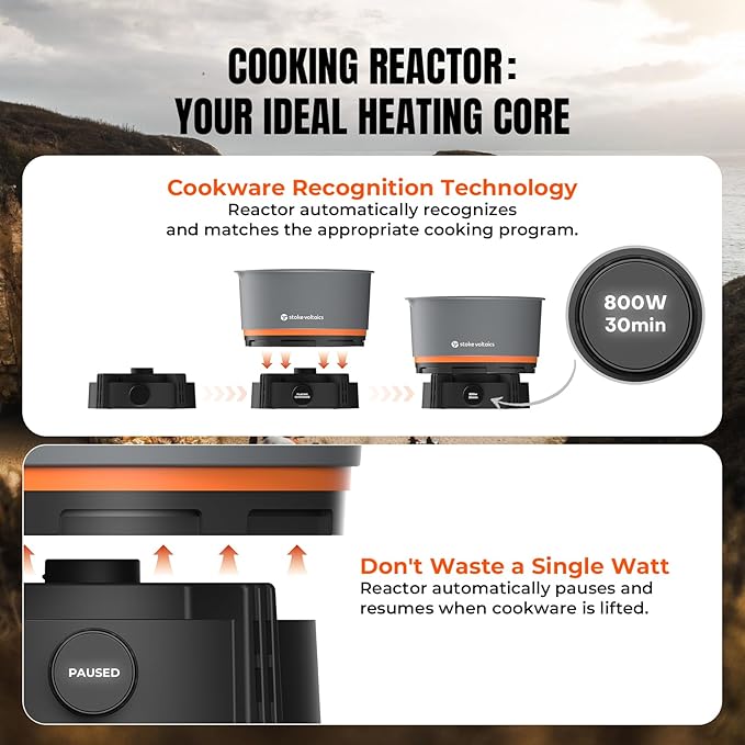 • Versatile Power Source Compatibility: Nomad cooking system is a electric cookeware with five power levels from 200W to 1000W that seamlessly integrates with car inverters, fuel generators, portable power stations and RV power sources, making it the ultimate outdoor electricity cooking solution for Car Camping, Electric Vehicles, Recreational Vehicles, Overlanding and Vanlife