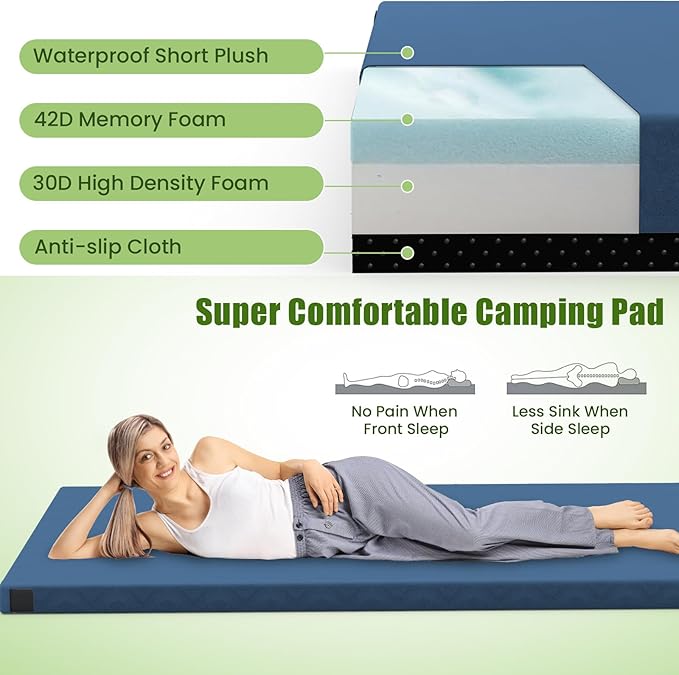 • Comfortable for Sleeping: The 2.5" thick foam camping mattress is filled with 1/3 soft rebound memory foam and 2/3 high-density base support foam, bringing you the maximum comfort. No matter which sleeping position you prefer, it can suit your needs.