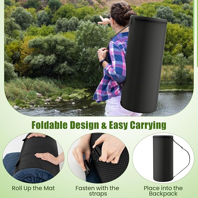 • Easy Storage and Carrying: The folding camping mattress is easy to store. Simply roll up the mattress, secure the buckles and store it in the bag for convenient storage. With adjustable straps, you can also easily carry the bag for traveling.