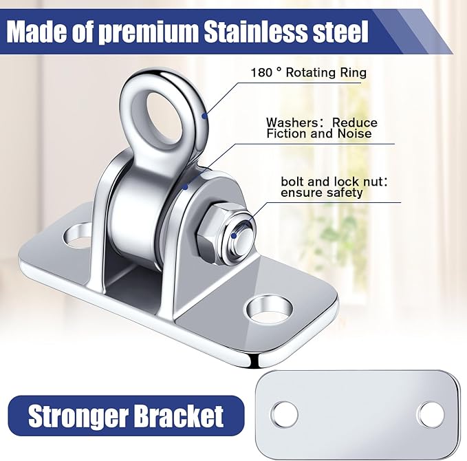• Quality and Durability: made with reliable stainless steel, our swing hanger features sturdiness and durability; The powder coating help to withstand rough weather conditions without rusting or corroding, providing long lasting service for enjoyment of outdoor or indoor swing activities