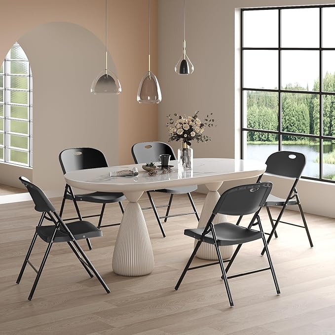 Nazhura 350 Weight Limit Heavy Duty Plastic Folding Chair with Reinfoced Steel Frame for Indoor and Outdoor, Wedding, Party, Restaurant, Meeting Room, Patio and Garden (Black, 6 Pack)