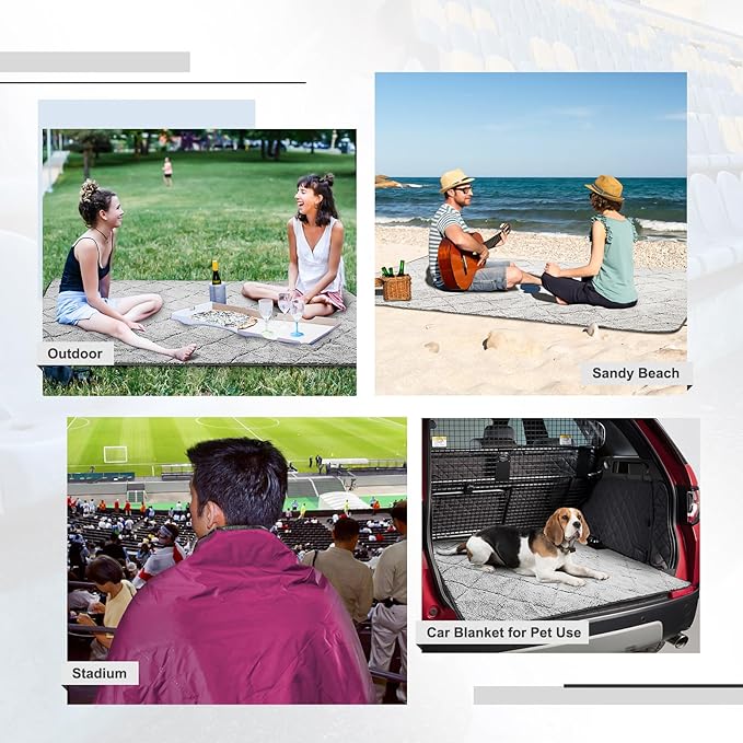 • Innovative Seam-sealed Watrproof Technology: This outdoor blanket waterproof stands out with groundbreaking seam-sealed waterproof technology.Designed without quilted stitching, layers connect elegantly for superior functionality and comfort—a fusion of innovation and elegance for your outdoor adventures
