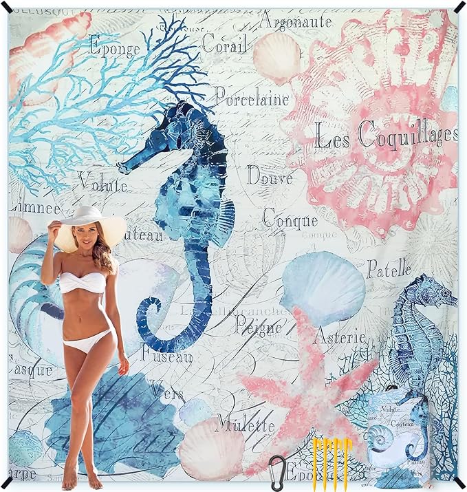 • 【Sandproof and Waterproof】This quick-drying, breathable blanket is durable and strong nylon. You can shake the beach mat to remove sand or other debris. There are pockets in each corner of the sand mat, and you can fill the side pockets with rocks and sand or use the included anchors to secure the beach so it won't wiggle around easily.