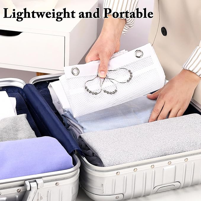 • ใ€๐‚๐จ๐ง๐ฏ๐ž๐ง๐ข๐ž๐ง๐ญ ๐‡๐จ๐จ๐ค๐ฌ ๐ˆ๐ง๐œ๐ฅ๐ฎ๐๐ž๐ใ€‘Comes with 3 sturdy metal hooks that easily hang on shower curtain rods, eliminating the need for extra accessories. Ready to use right out of the package.