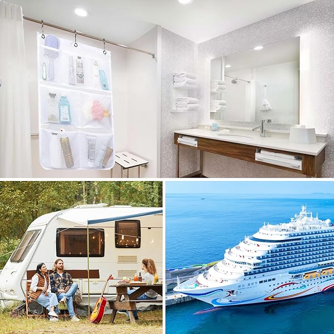 • ใ€๐Ÿ• ๐’๐ฉ๐š๐œ๐ข๐จ๐ฎ๐ฌ ๐๐จ๐œ๐ค๐ž๐ญ๐ฌใ€‘The shower caddy portable features 3 small top pockets, 2 large middle pockets, and 2 large bottom pockets, perfect for holding shampoo, conditioner, body wash, and other bath essentials.