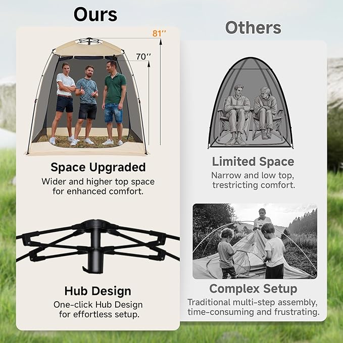 • 360° Ventilation & Bug Protection: Stay cool and bug-free with high-quality mesh walls that maximize airflow while keeping insects out. The robust hub structure adds extra protection from dirt and pests, creating a cleaner, more comfortable space for relaxing, dining, or watching the game.
