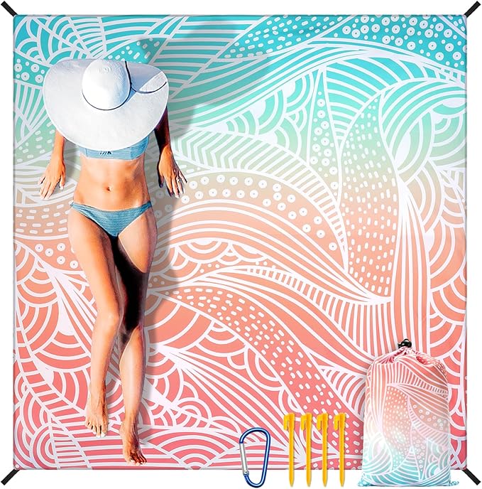 Beach Blanket Waterproof Sandproof Beach Mat 79" X 83"/10'x9'for 2-8 Adults Quick Drying Outdoor Picnic Mat Beach Accessories for Travel, Camping, Hiking