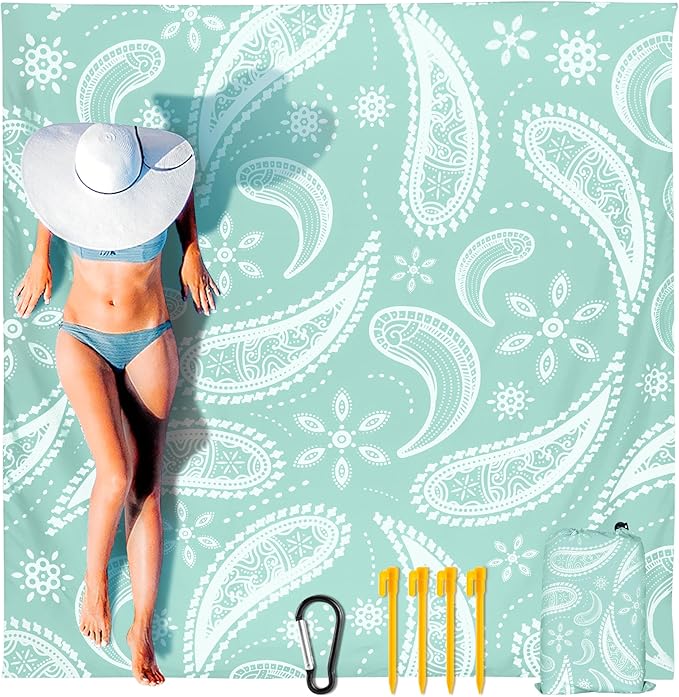 • 🌴【Lightweight Beach Items】79"*83" beach blanket oversized, weighted 0.71 lbs, fit 1-3 adults, and they can be easily folded into a 5.1"×7.5" carry bag.
