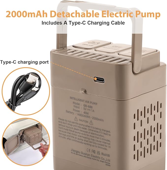 • 【SELF-INFLATING WITH BUILT-IN PUMP】- Say goodbye to manual pumping! The built-in pump allows for one-touch inflation, fully inflating the mattress in just 90 seconds. Whether you're camping, on a road trip, or hosting guests, this quick and easy setup saves time and effort. Deflation is just as simple—press the button, and it’s ready to store
