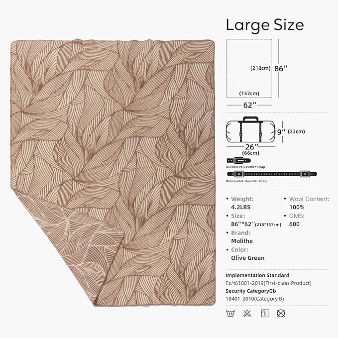 • CONVENIENT PORTABILITY - Our wool throw blanket is equipped with a premium PU strap, strong yet flexible, you can easily carry this wool blanket wherever you go, ensuring warmth and comfort at all times.