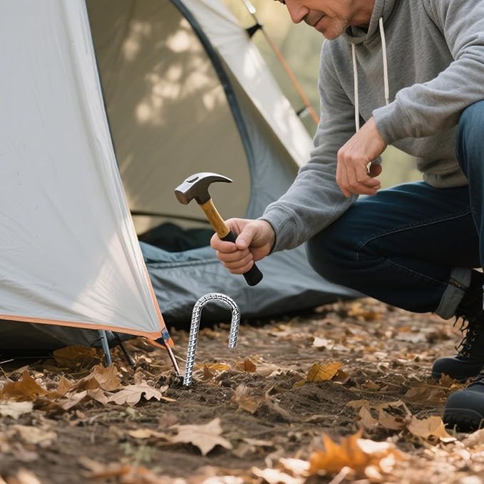 • Multi-purpose: The J-shaped design can better fix the tent, swing sets, slides, fences, trampolines, nets, gazebos, yard decorations, prevent the tents or sheds from slipping away in winds