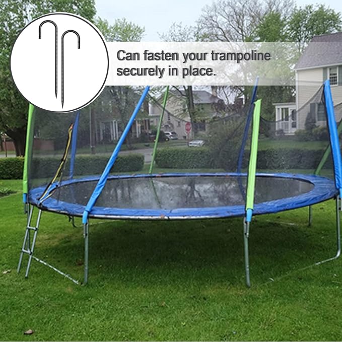 • Multi-purpose: The J-shaped design can better fix the tent, swing sets, slides, fences, trampolines, nets, gazebos, yard decorations, prevent the tents or sheds from slipping away in winds