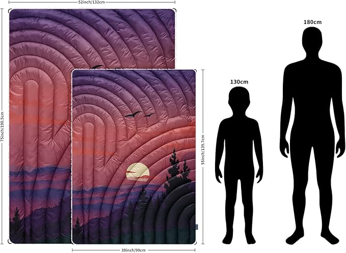• Design and Use:The camping blanket features a stylish design with a pattern that evokes the beauty of nature. Its puffy and soft texture adds to its aesthetic appeal.Perfect for camping, picnics, and outdoor activities, this multi-functional blanket is also suitable as a stadium blanket, providing warmth and comfort in cold weather conditions.