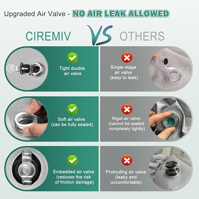 • 🚗【Ciremiv Car Mattress Equipped with the Most Complete Car Sleeping Accessories】Are you tired of searching high and low for the perfect accessories to complement your suv air mattress? Why spend hours scouring different websites or stores when you can find everything you need in one place? As an Amazon seller, we take immense pride in offering you a wide range of accessories that are tailor-made for our premium car air mattress.