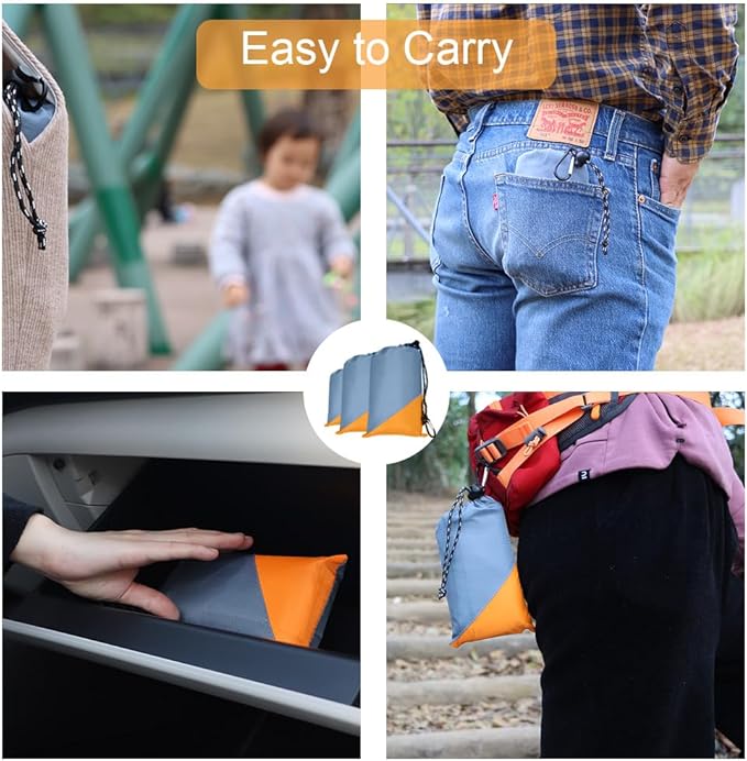 • Compact & Lightweight – This compact blanket can be folded to fit a small bag, it’s so handy even can be put in your pocket, it's also a ultralight tarp. Hook it onto your backpack, throw it in your bag or keep it in your car. It’s 7.2oz but a larger size. Carry it when you’re outdoors, it can be your small travel picnic blanket for festival, concert or backpacking etc, It’ll never be a burden.