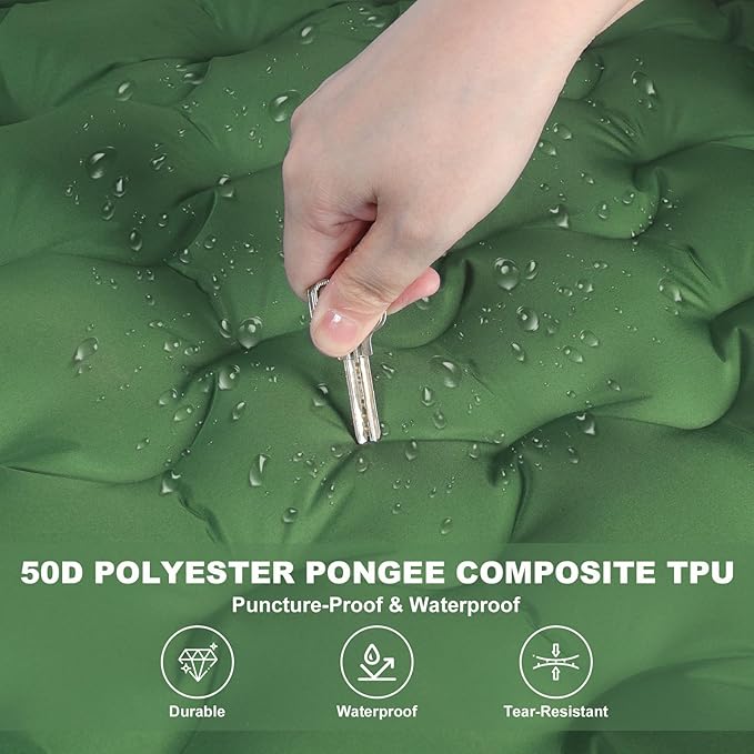 • Durable and Reliable Quality:Crafted from high-quality 50D Polyester Pongee composite TPU, our camping mattress is built to last. It can support up to 330 pounds and is resistant to punctures, making it the perfect companion for all your outdoor expeditions. The waterproof design ensures it stays dry and comfortable in any weather conditions;