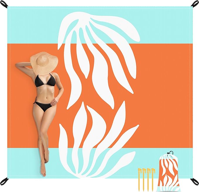• Easy to Spot: Liven up the contrasting orange and blue colors with the white coral print. Whether you're lounging, camping, picnicking, or playing beach games, this beach blanket brings the beach vibe everywhere you go, making it easy to find yourself among similar towels and blankets