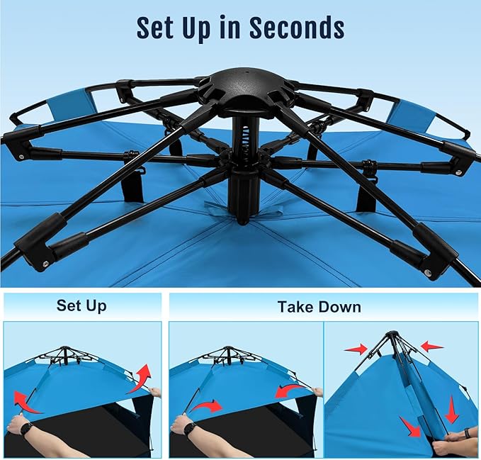 • Advanced Blackout Shelter Design: Our upgraded blackout coating blocks 99% of UVA and UVB rays (UPF 99+) and reduces up to 95% of sunlight. Enjoy cooler shade and full skin protection all day long.