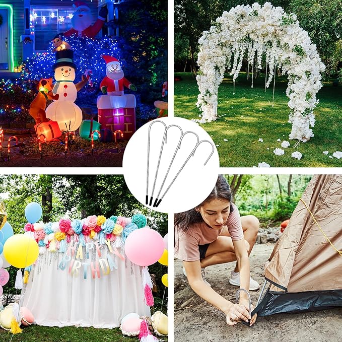 • Multiple Applicability: The yard stakes can be used as landscape fabric stakes, turf stakes, tent stakes, fence stakes, etc. Or as ground stakes for outdoor decorations, fixing balloons, lights, inflatable dolls for festivals or party.