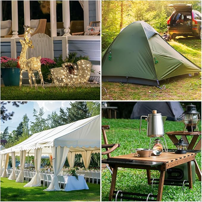 • Multiple Applicability: The yard stakes can be used as landscape fabric stakes, turf stakes, tent stakes, fence stakes, etc. Or as ground stakes for plant, outdoor decorations, fixing balloons, lights, inflatable dolls for festivals or party.
