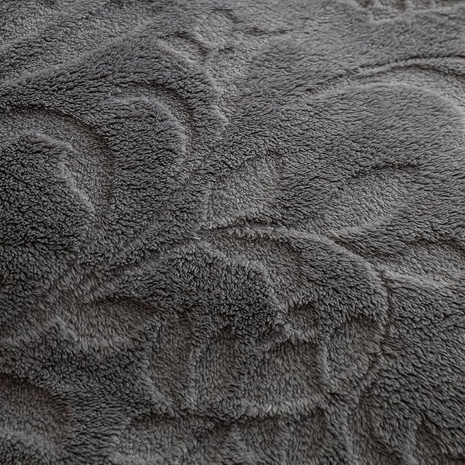 UKELER Sherpa Throw Blanket 50 × 60 inch,Floral Fleece Blanket for All Season, Warm and Cozy Blanket for Couch Sofa Bed Office Camping, Dark Grey