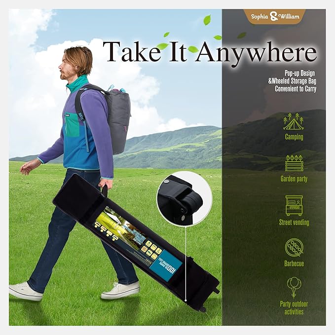 Sophia & William Canopy Tent Pop Up 10x10 ft One Person Push Set Up Tent, Outdoor Canopies Shelter Heavy Duty Straight Legs with 4 Sandbags & Guy Ropes, 1 Roller Bag & Storage Bag, 8 Stakes UPF50+