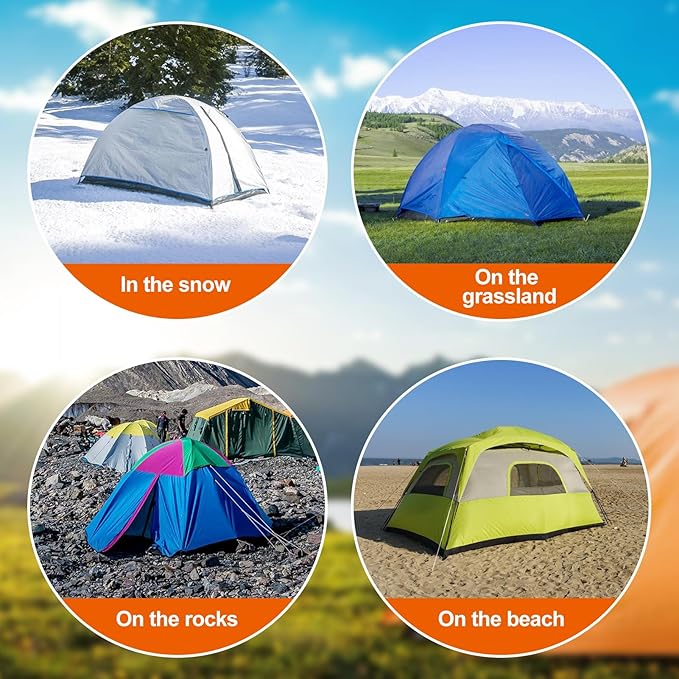 • Easy to Use: The bottom of the metal tent stakes is a pointed design that can penetrate hard soil well, and the top is bright orange plastic, which makes them easy to find on any terrain to prevent tripping