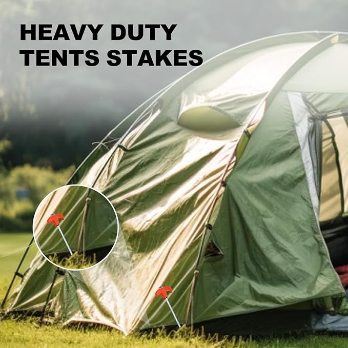 • Sturdy and durable:Camping stakes are 8 inches long and 0.31 inches in diameter.have threaded details for a stronger grip and can be adapted to a variety of surfaces, whether it's grass, hard soil, gravel or any other ground, he can hold on to it firmly.