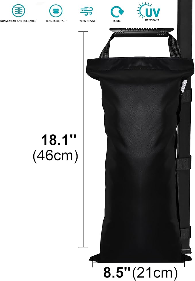 • 【NOTES】Sandbags only; sand and filler not included; These sand bags for weight cannot be filled with water directly. Maximum weight capacity per bag: 30 lbs. Recommended filling: 80% capacity to prevent overexpansion.