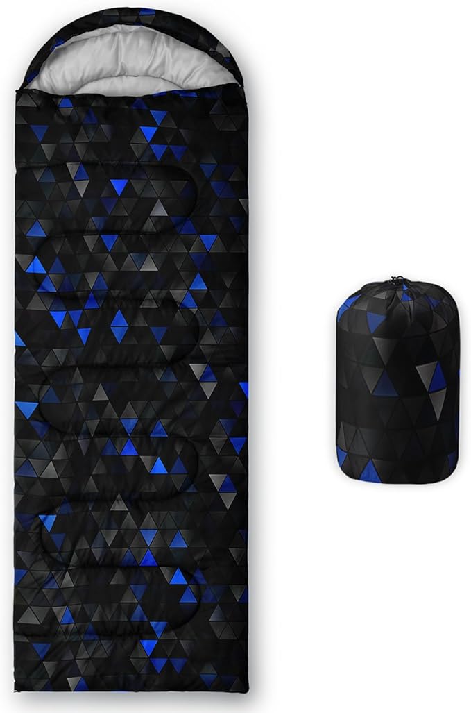 • Sleeping bags For All Seasons- Our camping sleeping bags are designed to give you a good night's sleep. Ideal for spring,summer,fall,and winter,rated from 32°F to 77°F (optimal comfort temperature is 50°F to 65°F). Stay comfortable and warm in any condition at normal altitude. Can be used for any outdoor adventure,class camping,summer camps,couch surfing,indoor blanket,and as an emergency blanket for vehicles.