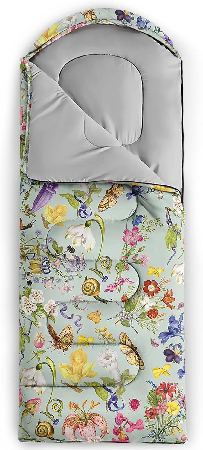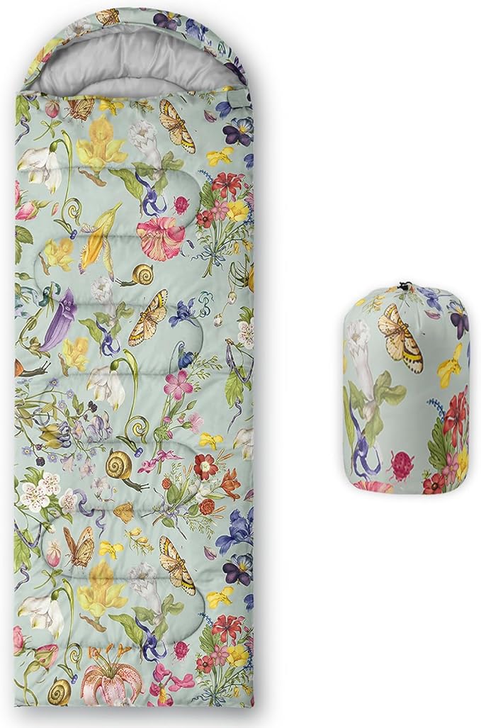 Sleeping Bags for Adults and Kids,3D Printing Camping Sleeping Bag for Girls Boys Lightweight Waterproof Cold/Warm 3-Season,Outdoor Travel with Compression Bags