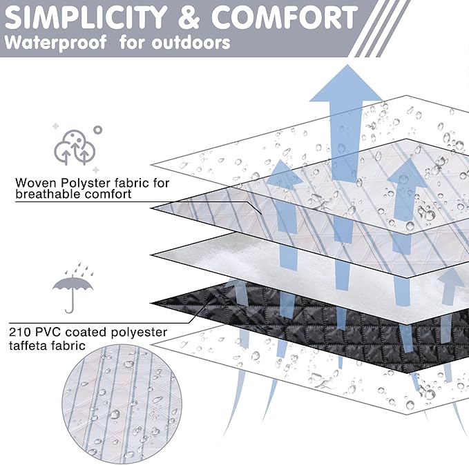 • 80*80 extra large size, thickened. Suitable for 4-8 adults: the picnic blanket can accommodate 6-8 sitting or 4 adults lying down, and can be spread out completely in the entire tent. It is very suitable for family outdoor picnics, outdoor mountaineering and camping.