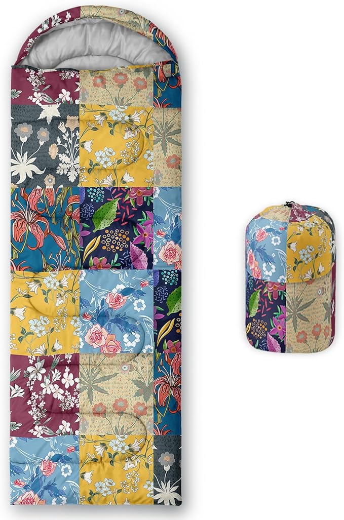 Sleeping Bags for Adults and Kids,3D Printing Camping Sleeping Bag for Girls Boys Lightweight Waterproof Cold/Warm 3-Season,Outdoor Travel with Compression Bags