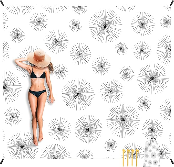 • Chic & Gift-Worthy: This black dandelion-on-white beach blanket blends minimalist design with boho flair. A standout among beach must haves, it’s perfect for picnics, travel, or gifting to your favorite outdoor lover.