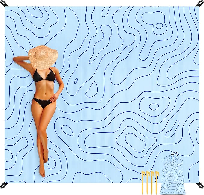 • Must-Have Accessory: Enjoy beach days in style with our blue terrain beach blanket, combining comfort, style, and convenience. Whether you're at a beach picnic, camping, traveling, or enjoying other activities, this outdoor accessory helps you stand out and easily find your spot on a crowded beach