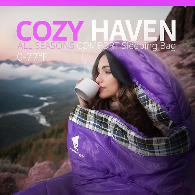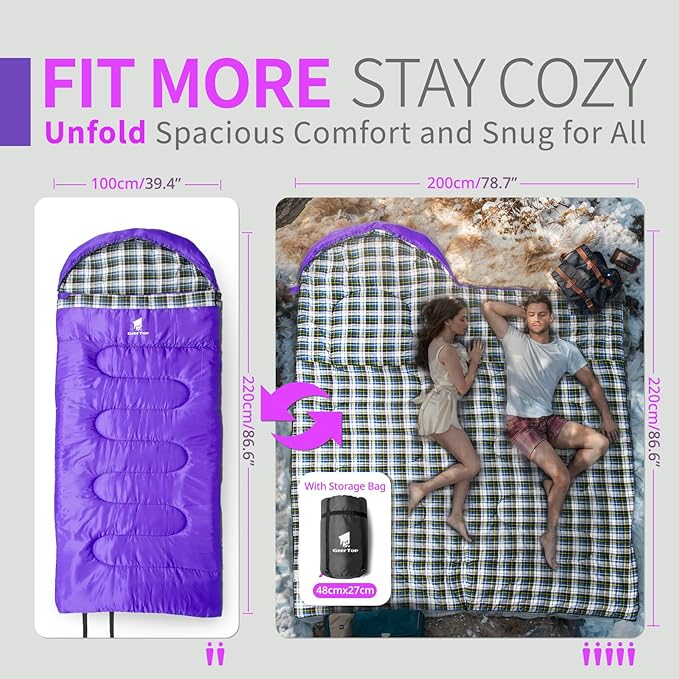 • 【Versatile as a Warm Blanket】GEERTOP sleeping bag could be an essential blanket that you can easily wrap yourself in or use as an outdoor blanket when fully unzipped. Unzip the bottom to poke your feet out without feeling constrained by the rectangular shape, offering more freedom compared to traditional mummy-style bags