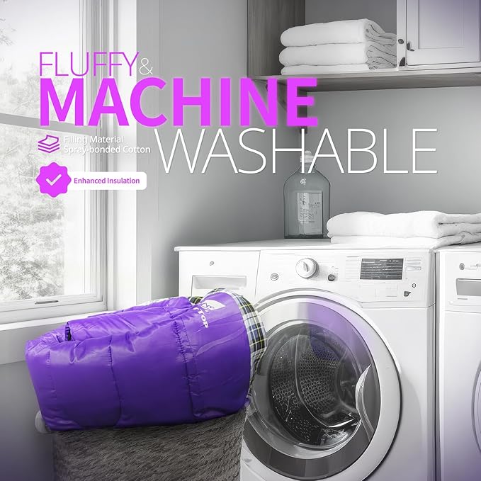• 【Easy Care and 4-Season Use】Machine washable for convenience, this warm and lightweight sleeping bag is suitable for all four seasons in warm climates. Wash on cold and tumble dry on low, then expose to sunlight to regain fluffiness. Ideal for camping, car camping, and other spacious occasions where comfort and warmth are a priority