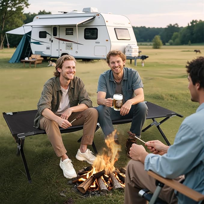 • 【Compact & Portable】Measuring 74.61"L × 29.33"W × 17.52"H and weighing only 17.73lbs, this outdoor camping cot for adults easily collapses into its included storage bag for convenient transportation.