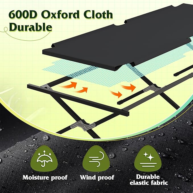 • 【Soft & Durable】Crafted with double-layer 600D Oxford fabric, this outdoor camping bed is durable, quick-drying and easy to clean - no need to worry about spills. The breathable material makes it perfect for camping and vacations, becoming your essential outdoor companion.