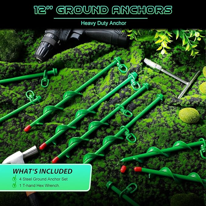 • Easy to Install: the earth anchors are easy and convenient for you to install, with the help of the T handle hex wrench, the pointed ends can easily penetrate into the soil, greatly improving the efficiency, saving your time and energy