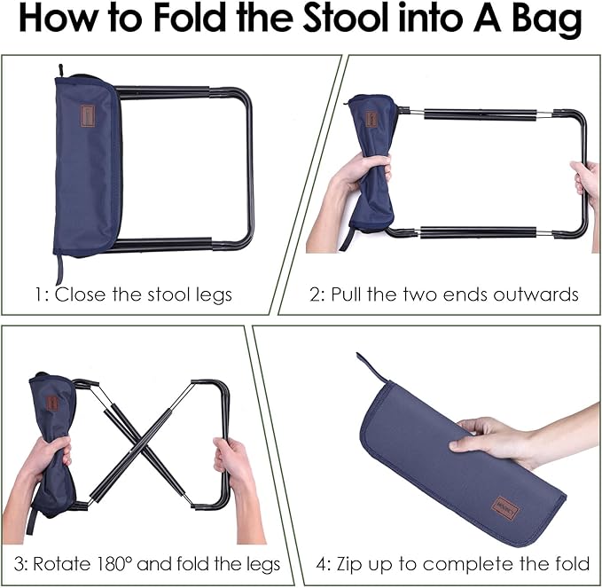 • 【Just Open and Use】The folding stool adopts a brand new design, combining a bag and a stool into one. It can be used after unzipping, without any extra bags taking up space. Fashion and simplicity start from now on.