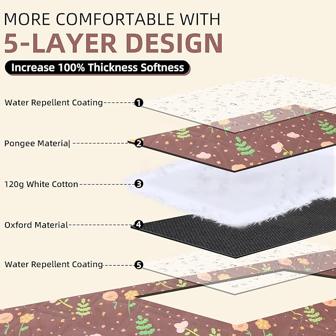• Soft & Durable Sandproof Beach Blankets:While the 120g cotton in the center provide cushioning. It's thicker than traditional picnic blanket, providing a more comfortable experience. Lying on it is extremely cozy, making you so relaxed that you might even feel like falling asleep. It's suitable for kids to play on in the courtyard, and can also be used for weekend lawn parties. Keeping it in the trunk of your car for emergencies is also a great option.