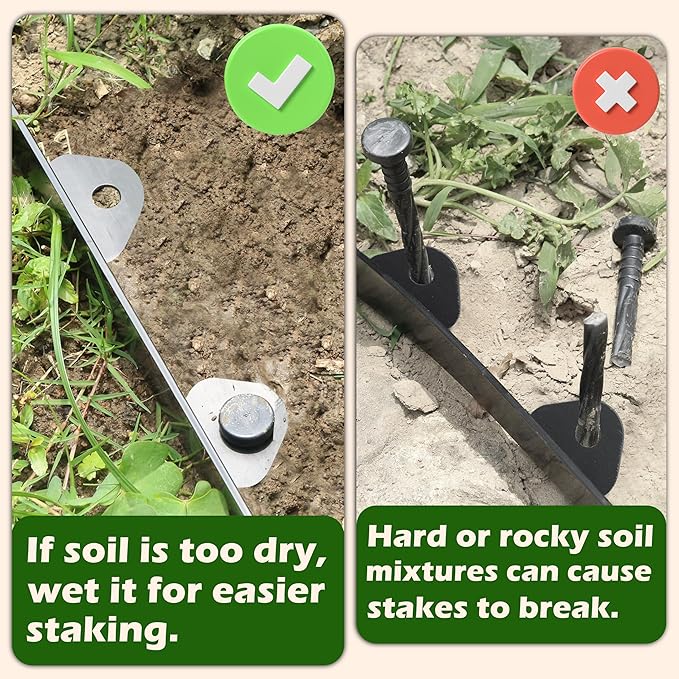 • No-Dig Design: The garden edging features a no-dig design; Simply stake it into the ground every 2-3 holes using the included 60 spikes, and enjoy a clean, professional look