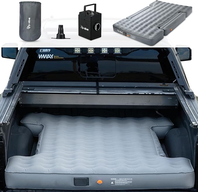 D-Hive Unbeatable Durability 6-6.5" Truck Bed Air Mattress, Durable Extra Thick 300D Oxford Fabric, Quick Easy Set-Up w/Electric Pump,Truck Camping Mattress Compatible with F150, Ram, Tundra