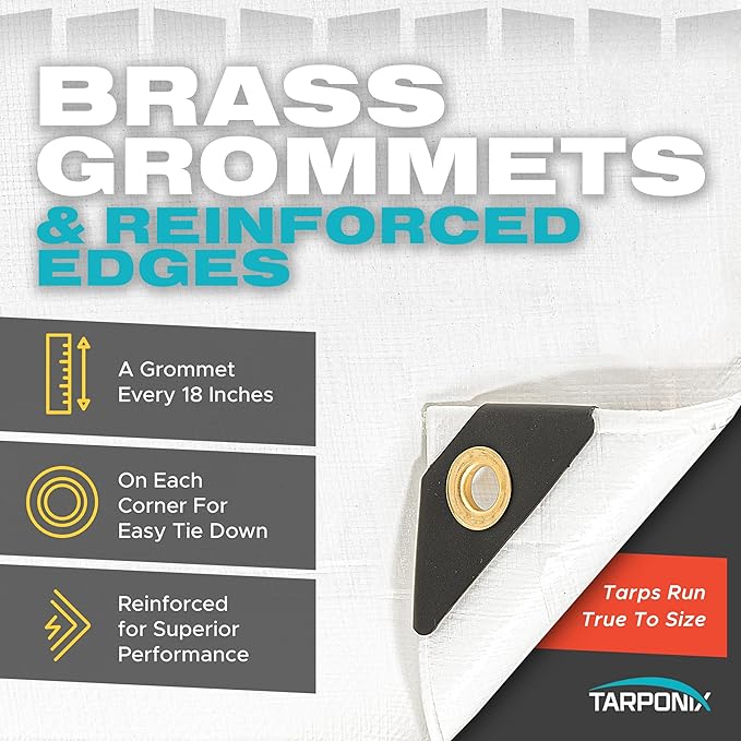 • Rustproof Aluminum Grommets: This tarp fits grommets which are rustproof with a clearance of every 18 inches that allows for tie-downs for stable and reliable coverage.