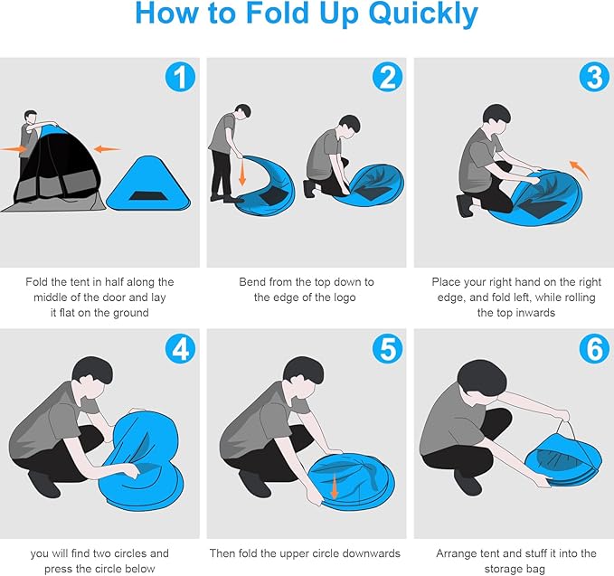 • Lightweight & Easy to Fold: Weighing only 3.79lbs, this tent is 25% lighter than competing models, making it incredibly portable and easy to carry in its compact storage bag. With clear instructions and step-by-step video tutorials, folding and packing the tent is easy, solving the frustration with pop-up tents