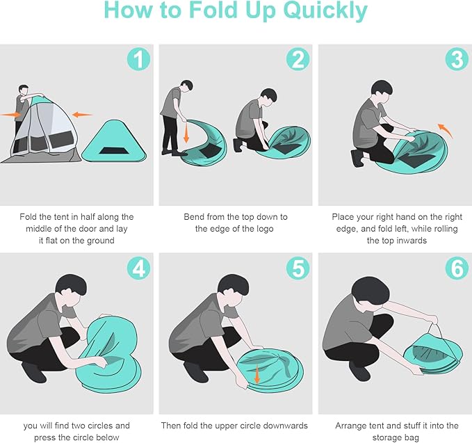 • Lightweight & Easy to Fold: Weighing only 3.79lbs, this tent is 25% lighter than competing models, making it incredibly portable and easy to carry in its compact storage bag. With clear instructions and step-by-step video tutorials, folding and packing the tent is easy, solving the frustration with pop-up tents
